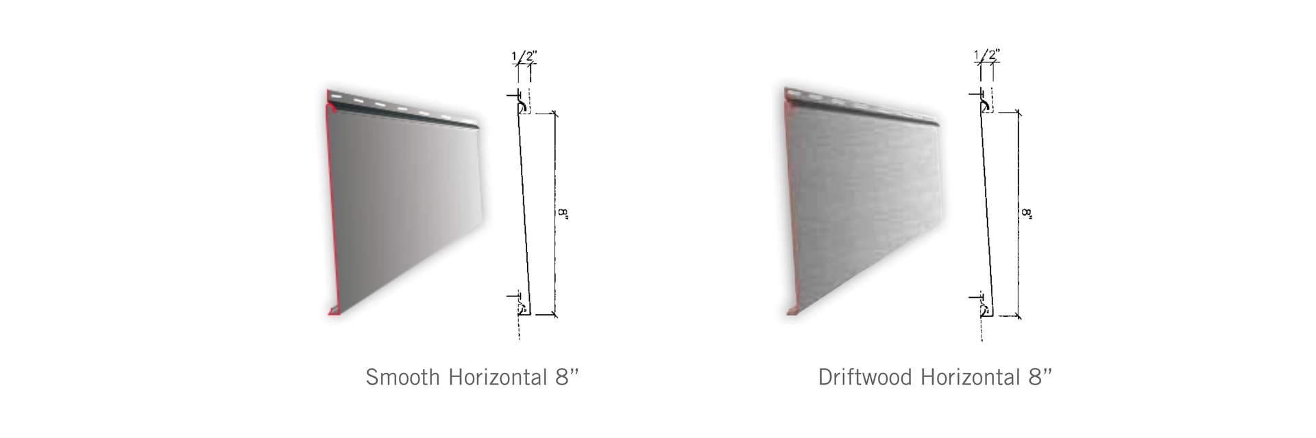 Horizontal 8″ aluminum siding is available in two finishes: