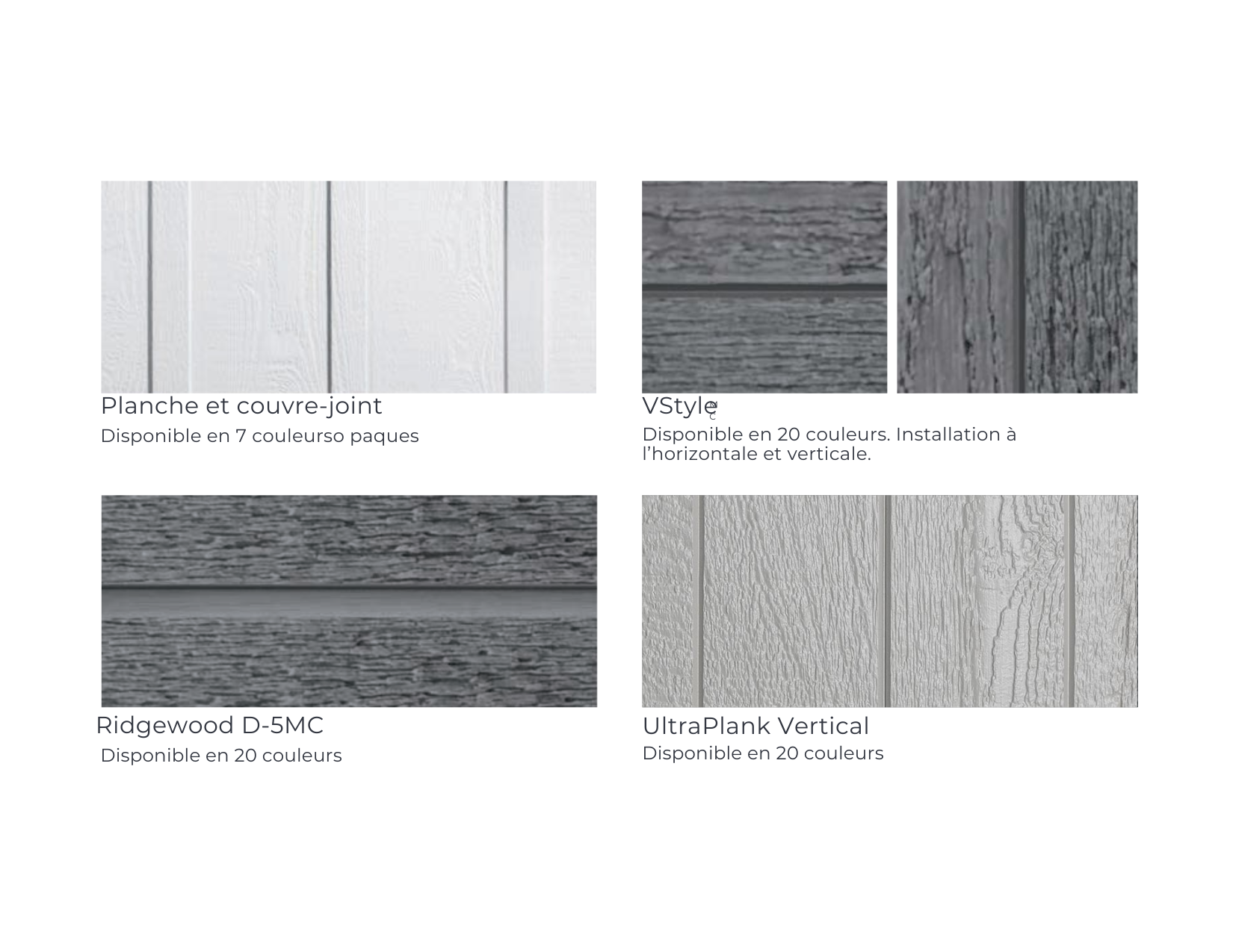 Nous offrons les revêtements CanExel VStyle, Ridgewood D5, UltraPlank vertical, planche et couvre-joint. Les produits CanExel offrent un fini magnifique; on retrouve l’apparence authentique du bois ainsi que sa durabilité. CanExel offre du caractère à vos projets!